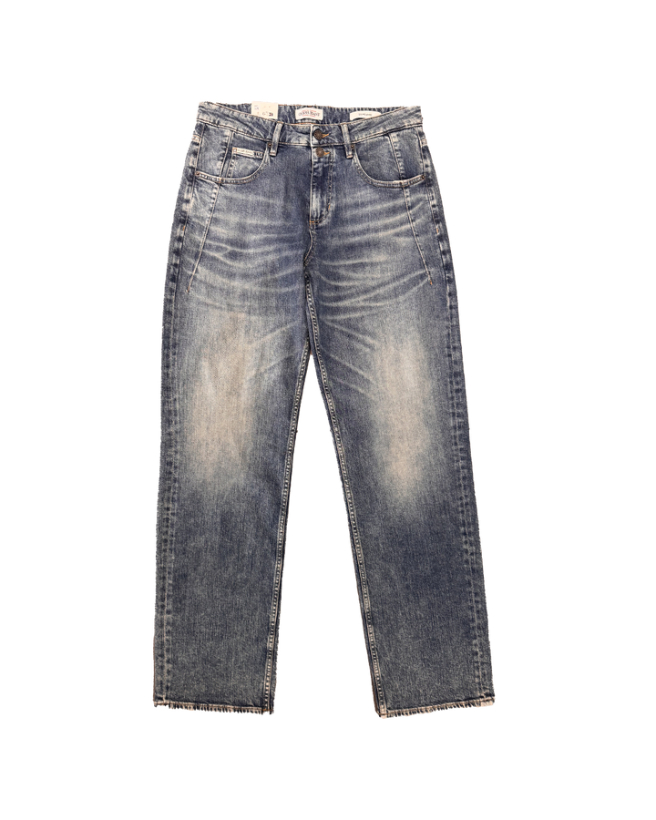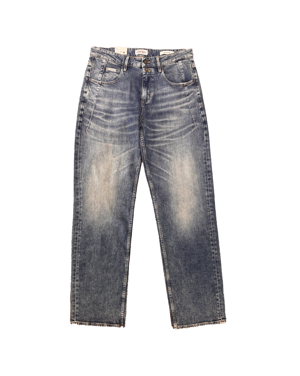 - Jeans in denim stretch lavorato con lavaggio ingiallito.