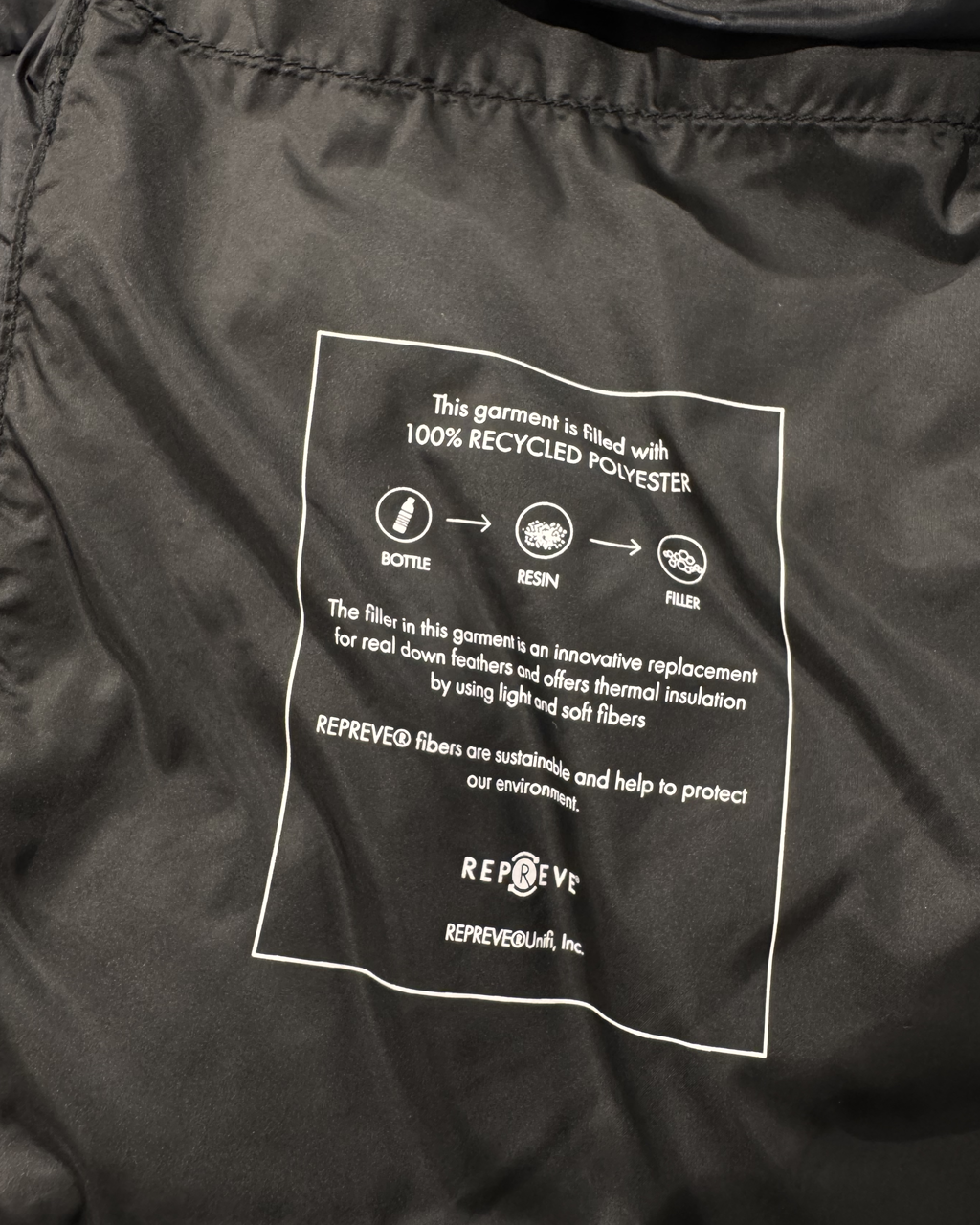 Realizzato in nylon e a partire da plastica riciclata proveniente dall’oceano, questo piumino presenta delle tasche laterali, una chiusura con zip frontale e l’iconico logo triangolo rosso in formato mini sul petto. Vestibilità classica.