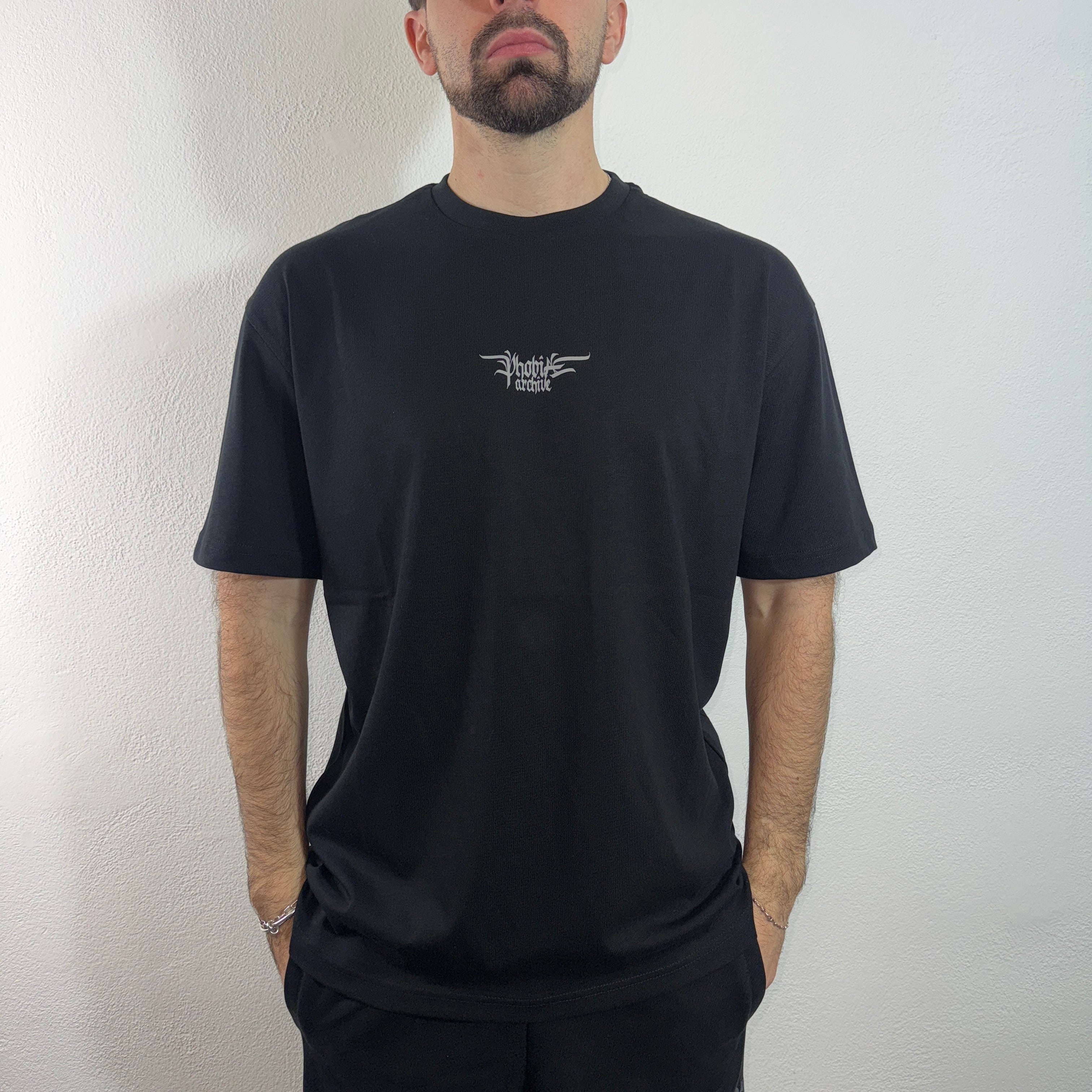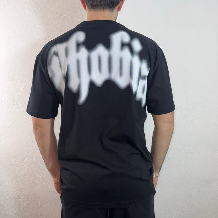 T-shirt con logo gotico frontale e sul restro.
