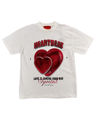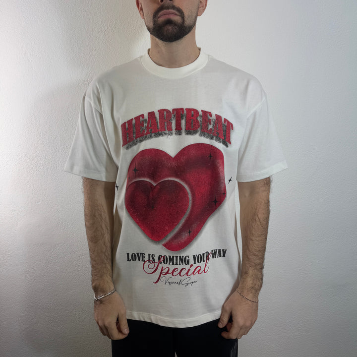 Tshirt bianca con stampa cuore unica sul davanti. Realizzata in materiale leggero e di alta qualità, questa maglia è perfetta per cho desidera un'opzione alla moda e comoda.