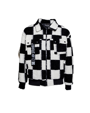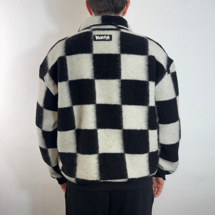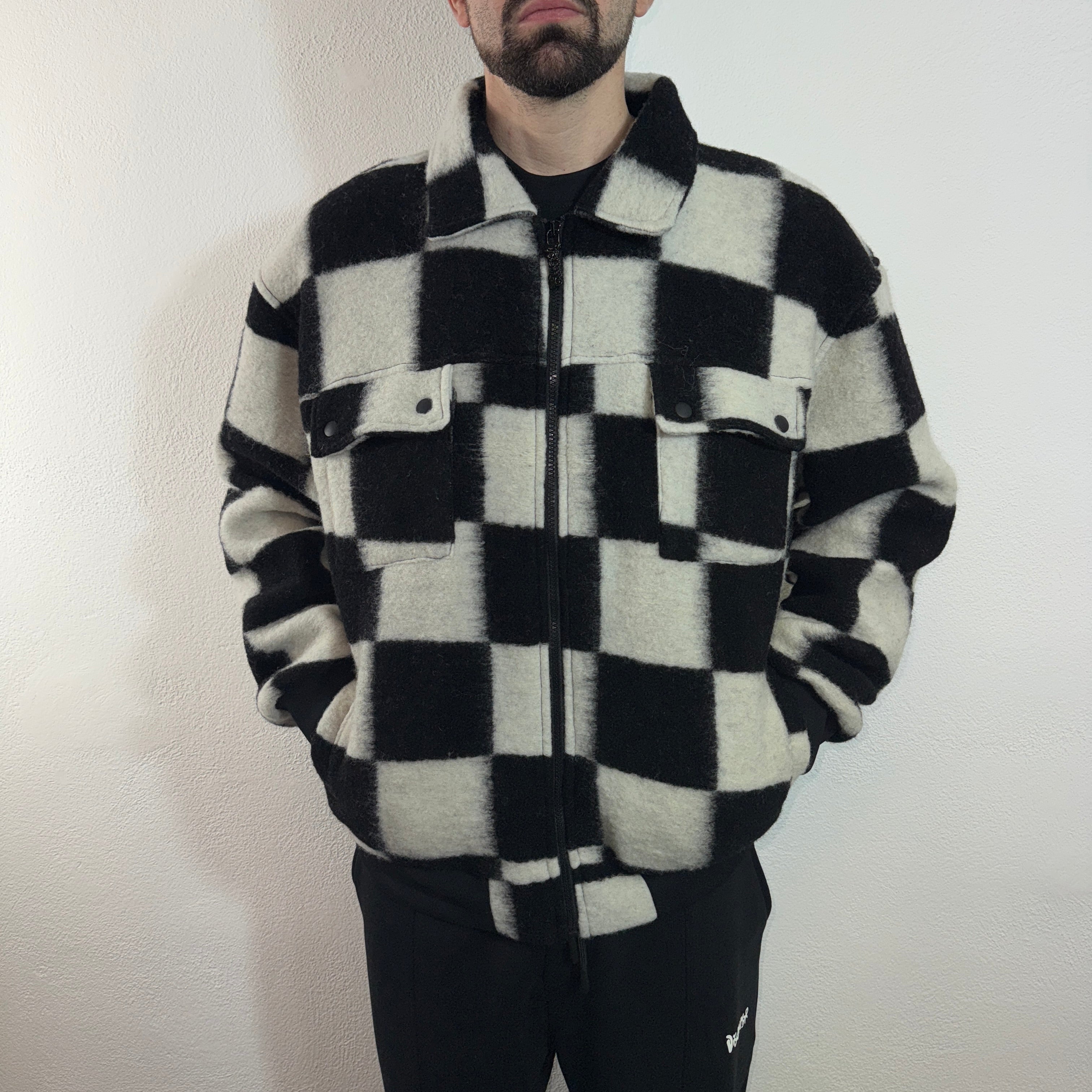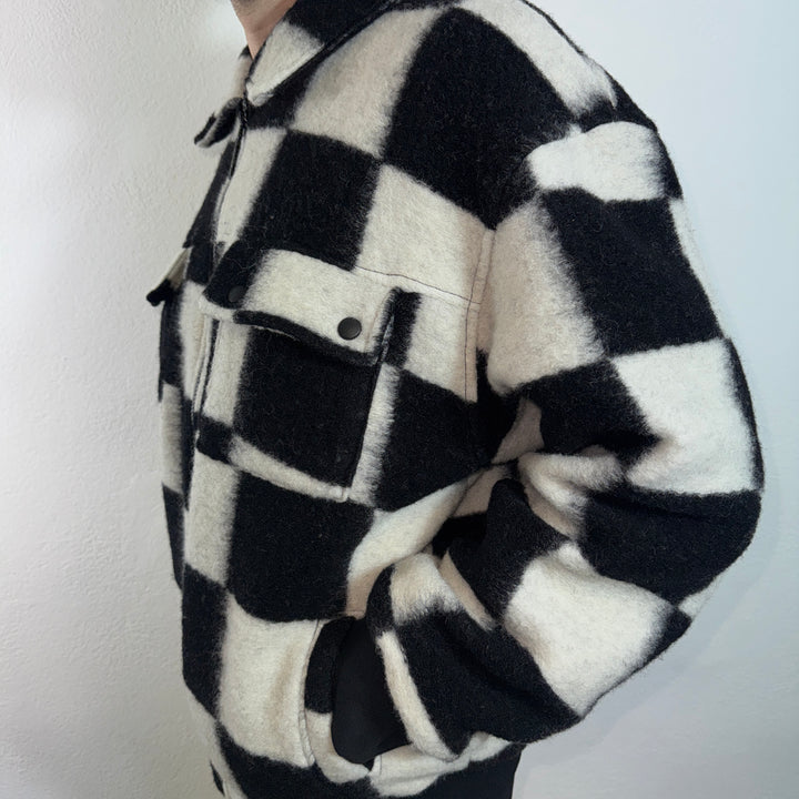 Giacca camicia in misto lana con chiusura con zip e patch in gomma.