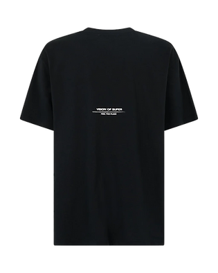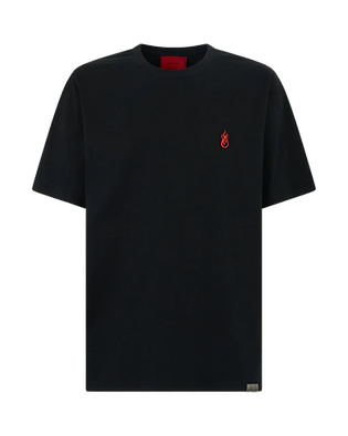 T-shirt nera con logo serigrafato e logo fiamme ricamate