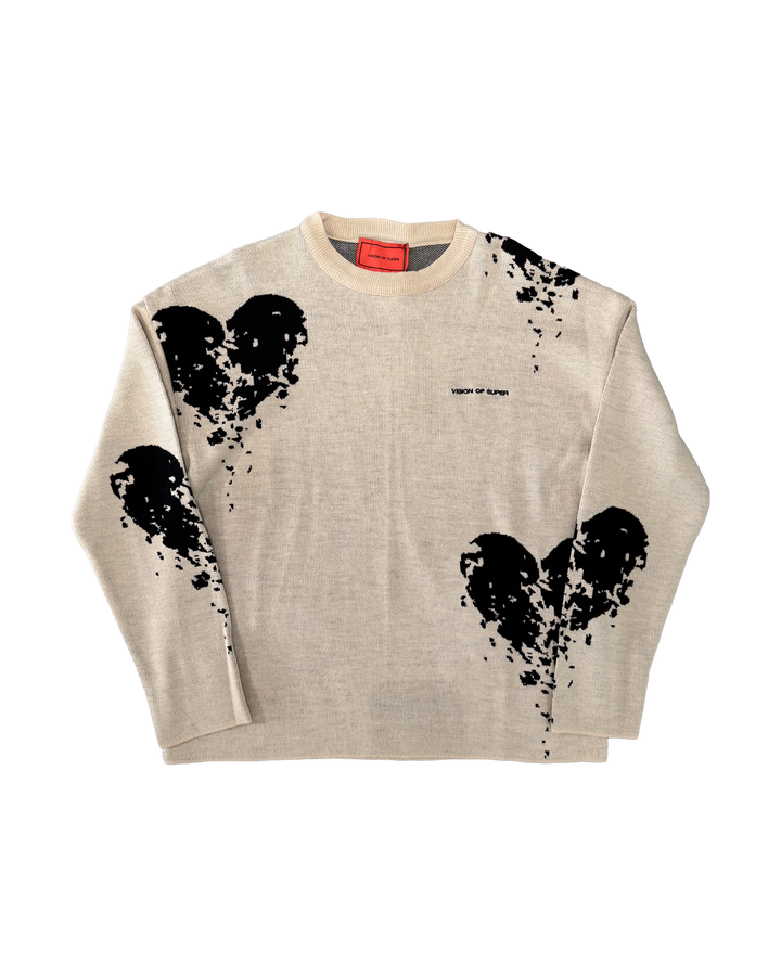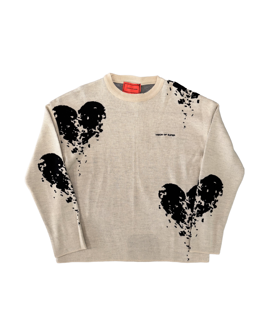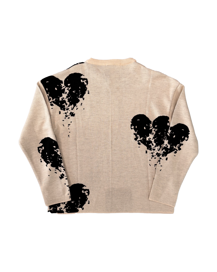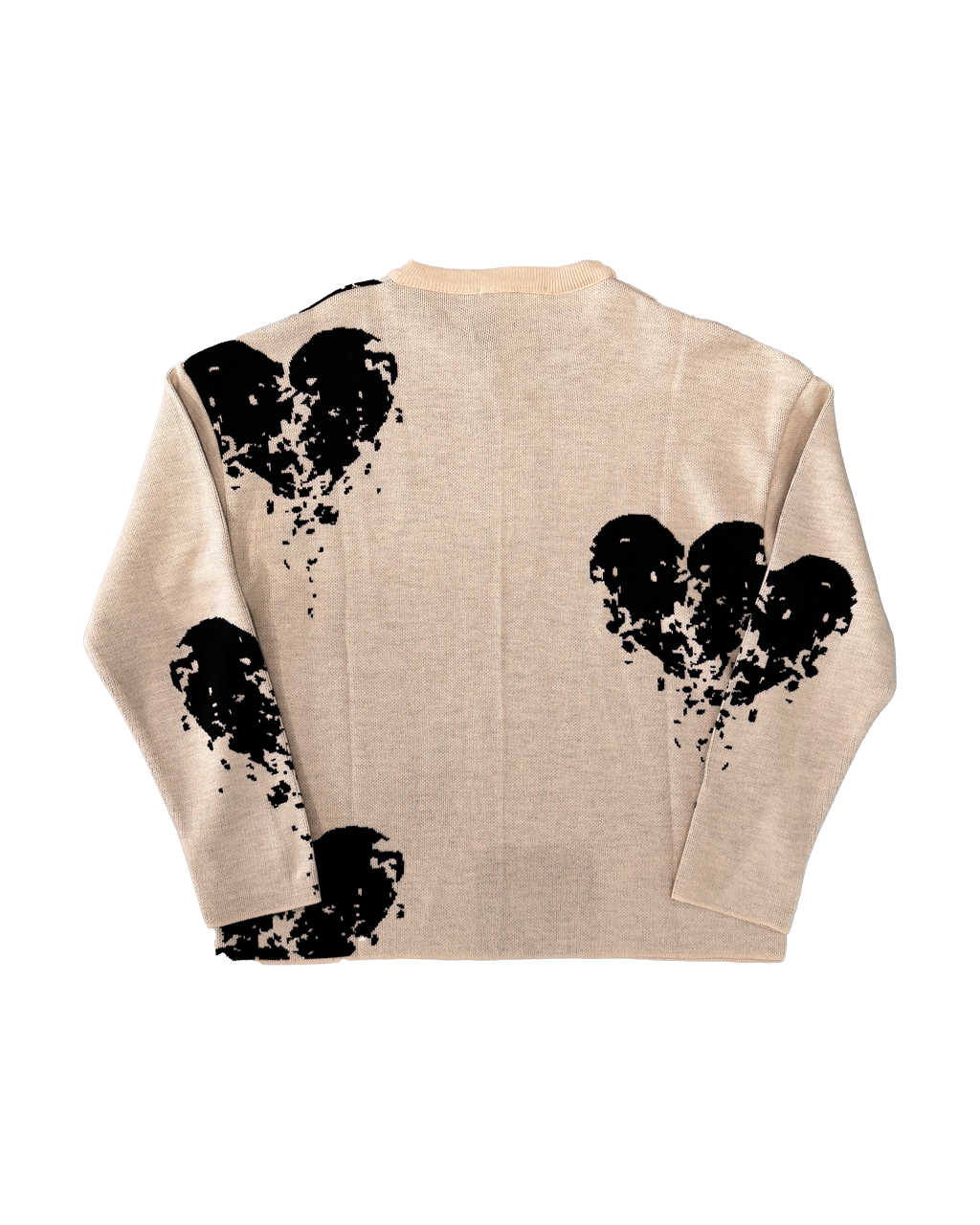 Maglioncino beige con grafica all-over cuore spezzato nero.