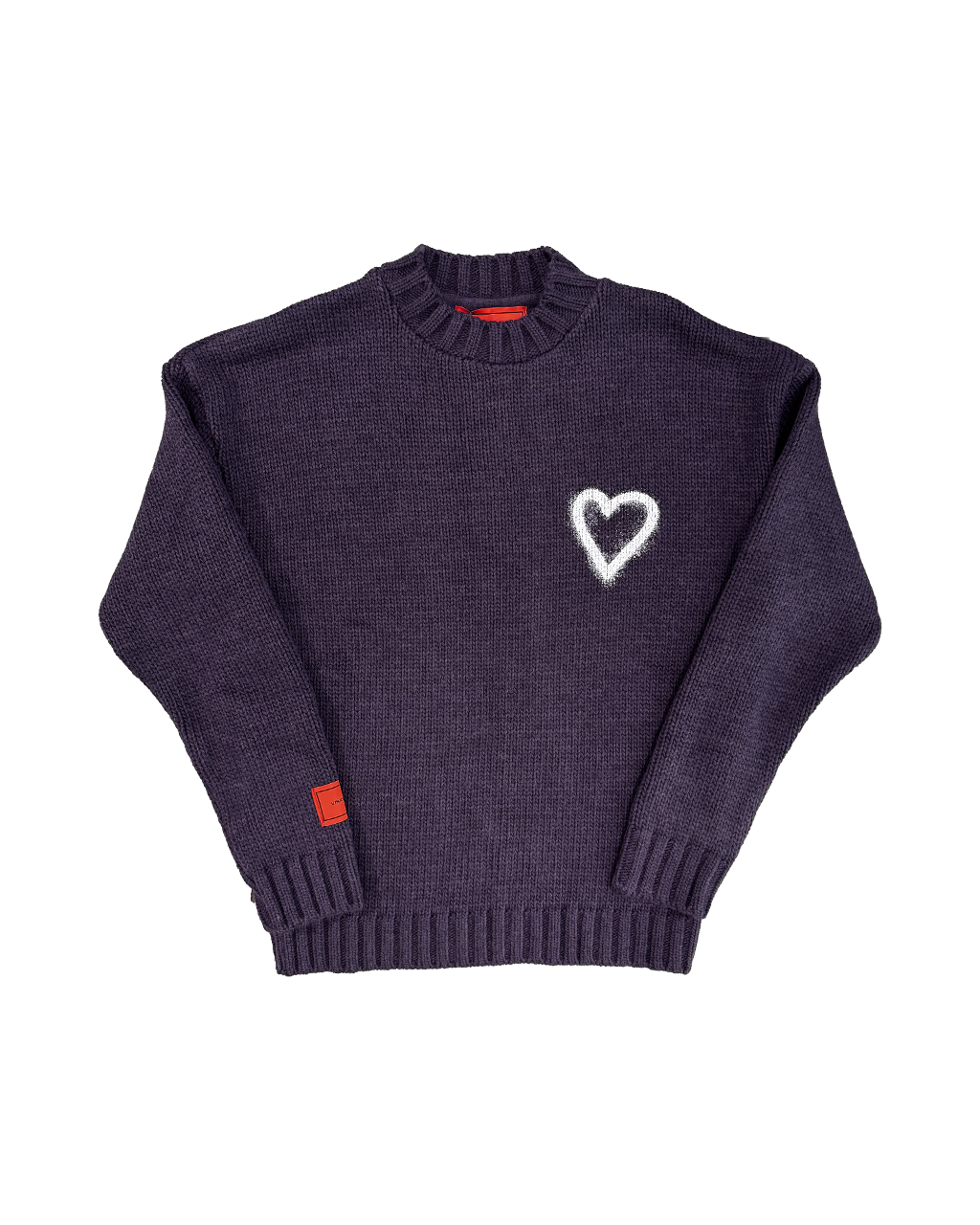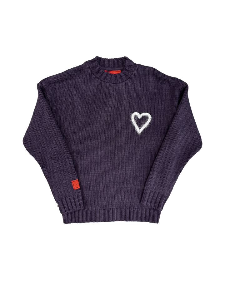 Maglione viola con cuore e patch.